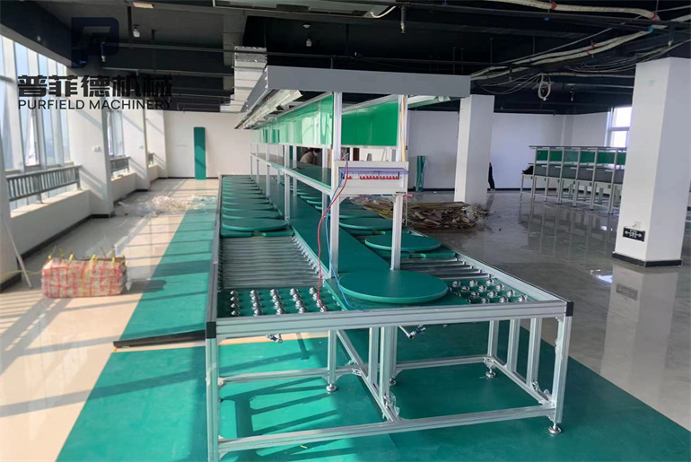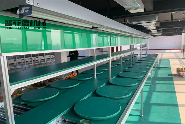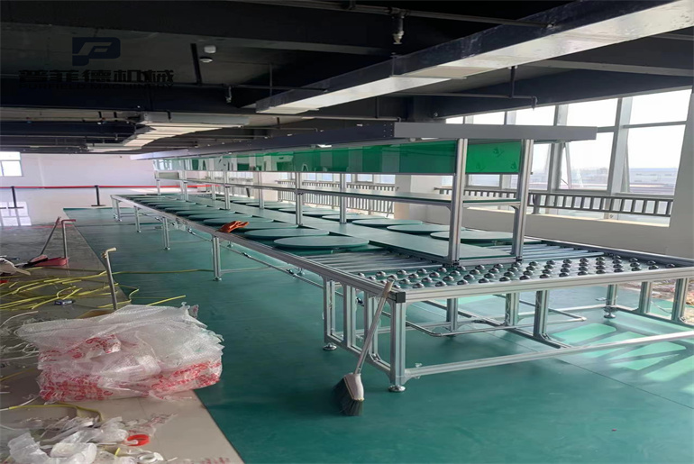 倍速鏈流水線又叫自流式輸送系統(tǒng),主要應用于各種電子電器、機電等行業(yè)生產線。動力驅動部分電機采用臺灣晟邦齒輪減速電機,配套變頻器調速。主架部分:支架采用40*40*2mm鋁型材制作、導軌采用100*118*2mm倍速鏈專用鋁型材。輸送介質;輸送介質采用3倍速鏈條輸送,配套驅動輪、張緊座、導向輪。控制部分:采用PLC程序控制,配套觸摸屏、頂升移栽/平行移栽、阻擋氣缸、腳踏閥等按節(jié)拍控制生產。工裝治具采用工裝板。