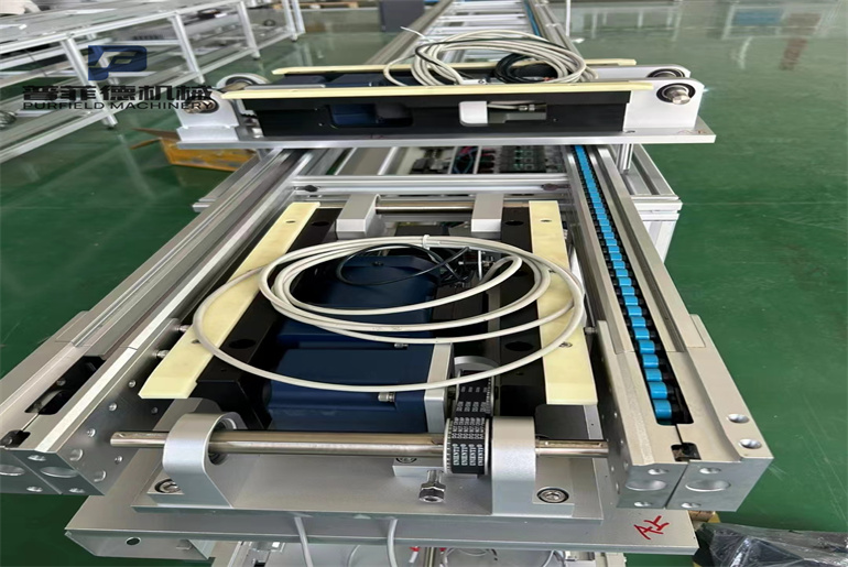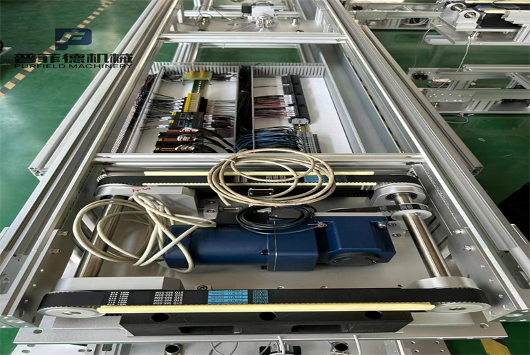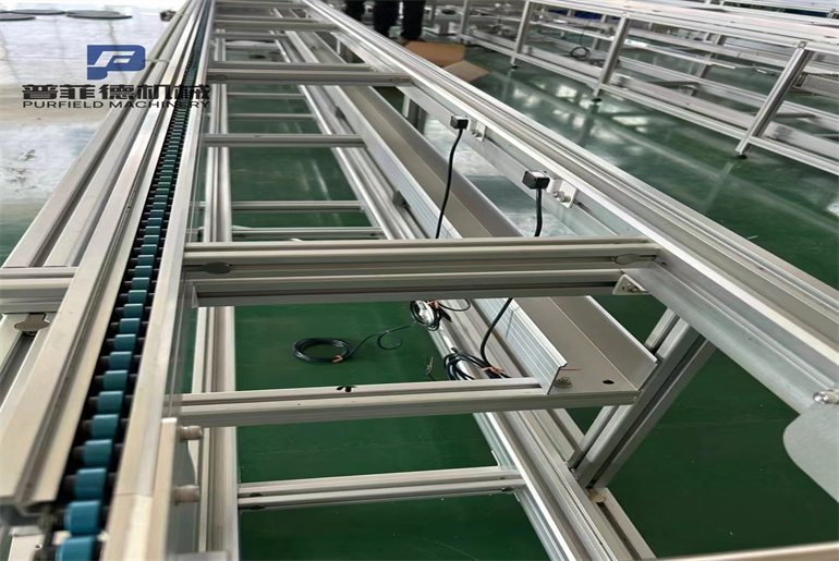 倍速鏈流水線又叫自流式輸送系統(tǒng),主要應用于各種電子電器、機電等行業(yè)生產(chǎn)線。動力驅(qū)動部分電機采用臺灣晟邦齒輪減速電機,配套變頻器調(diào)速。主架部分:支架采用40*40*2mm鋁型材制作、導軌采用100*118*2mm倍速鏈專用鋁型材。輸送介質(zhì);輸送介質(zhì)采用3倍速鏈條輸送,配套驅(qū)動輪、張緊座、導向輪??刂撇糠郑翰捎肞LC程序控制,配套觸摸屏、頂升移栽/平行移栽、阻擋氣缸、腳踏閥等按節(jié)拍控制生產(chǎn)。工裝治具采用工裝板。