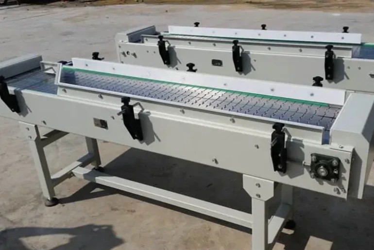 倍速鏈流水線又叫自流式輸送系統(tǒng),主要應(yīng)用于各種電子電器、機電等行業(yè)生產(chǎn)線。動力驅(qū)動部分電機采用臺灣晟邦齒輪減速電機,配套變頻器調(diào)速。主架部分:支架采用40*40*2mm鋁型材制作、導(dǎo)軌采用100*118*2mm倍速鏈專用鋁型材。輸送介質(zhì);輸送介質(zhì)采用3倍速鏈條輸送,配套驅(qū)動輪、張緊座、導(dǎo)向輪??刂撇糠郑翰捎肞LC程序控制,配套觸摸屏、頂升移栽/平行移栽、阻擋氣缸、腳踏閥等按節(jié)拍控制生產(chǎn)。工裝治具采用工裝板。