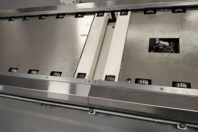 倍速鏈流水線又叫自流式輸送系統(tǒng),主要應(yīng)用于各種電子電器、機(jī)電等行業(yè)生產(chǎn)線。動力驅(qū)動部分電機(jī)采用臺灣晟邦齒輪減速電機(jī),配套變頻器調(diào)速。主架部分:支架采用40*40*2mm鋁型材制作、導(dǎo)軌采用100*118*2mm倍速鏈專用鋁型材。輸送介質(zhì);輸送介質(zhì)采用3倍速鏈條輸送,配套驅(qū)動輪、張緊座、導(dǎo)向輪??刂撇糠郑翰捎肞LC程序控制,配套觸摸屏、頂升移栽/平行移栽、阻擋氣缸、腳踏閥等按節(jié)拍控制生產(chǎn)。工裝治具采用工裝板。